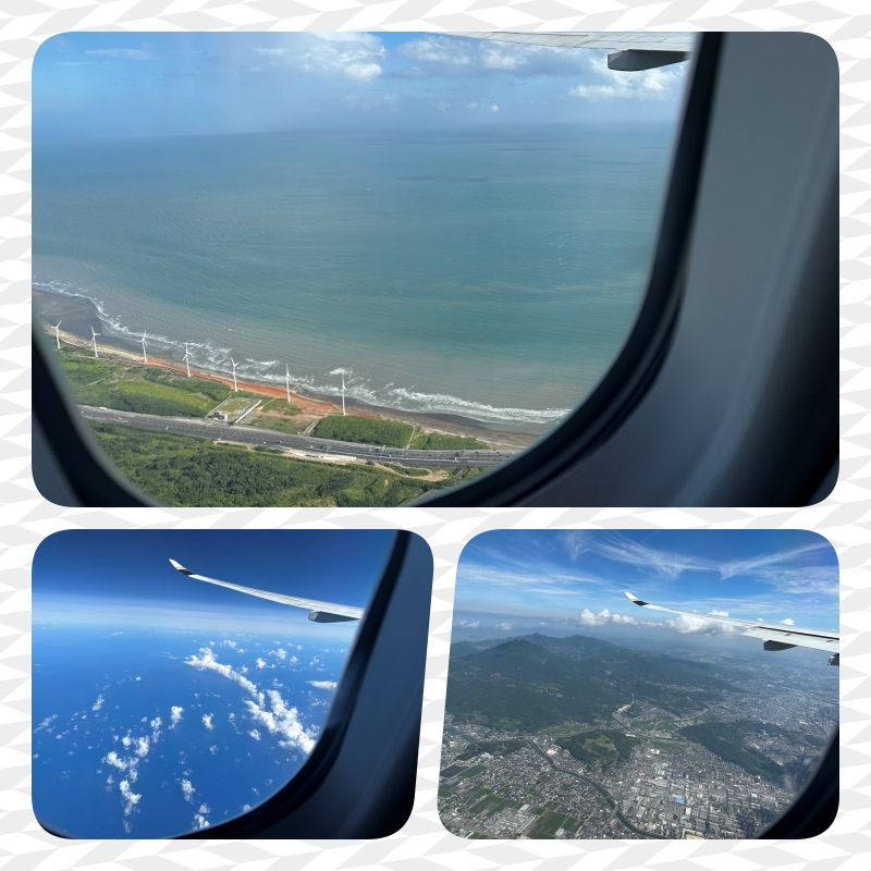這次我們坐的是靠窗的座位,起飛時看到了美麗的海濱!