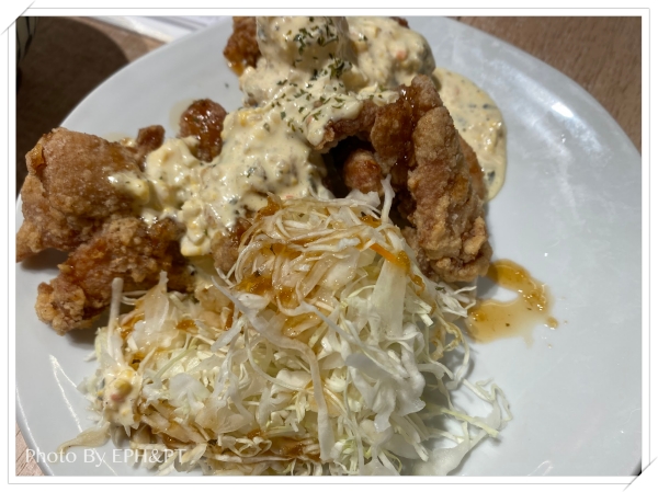 咚 南蠻炸雞送來了,上面淋著塔塔醬的炸雞看起來格外美味!