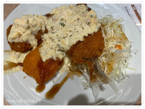 上面除了塔塔醬,還有天丼的醬,絕配!