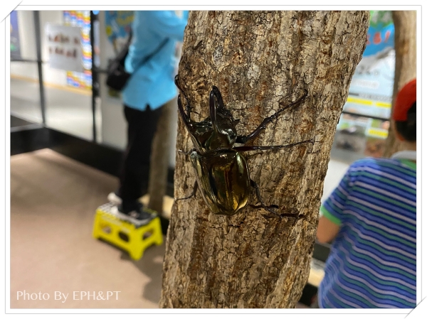 但在這之前,我們看到旁邊有個甲蟲體驗區,因為沒有親眼看過獨角仙、鍬形蟲,所以我們決定去看一下!
