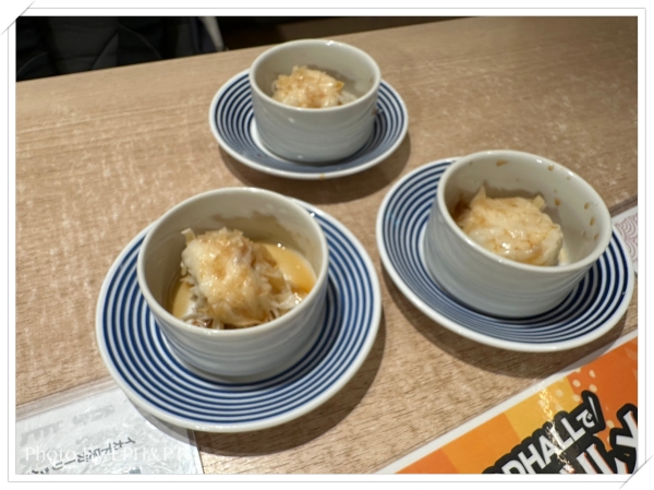 點完菜,首先送上了三個小小的小菜(我到現在還是不知道那是甚麼…),