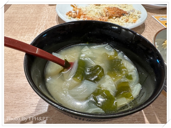味噌湯好美味!裡面的料給的超大方~一碗接著一晚,咕嚕咕嚕喝掉吧!